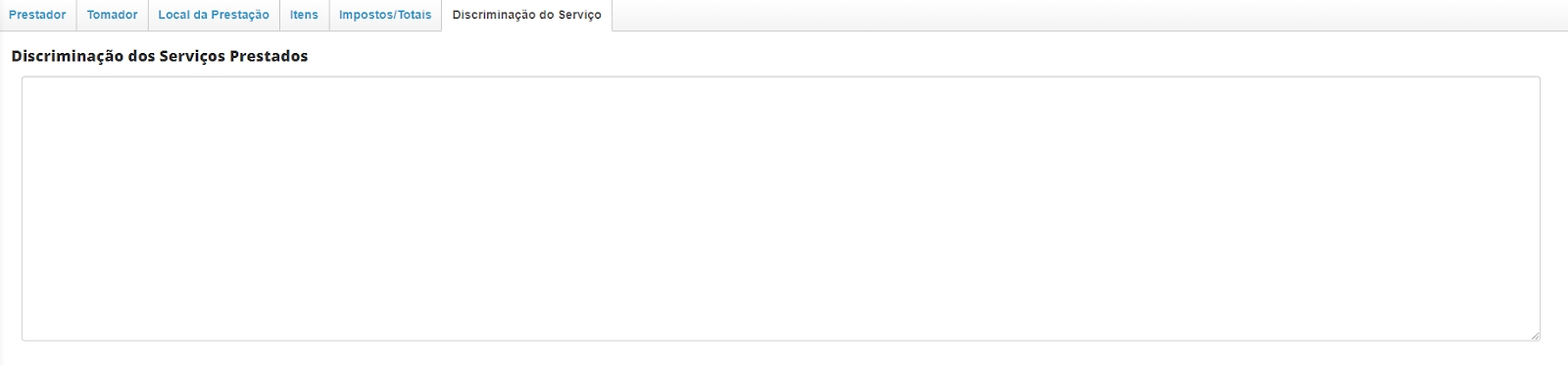 Seção Discriminação do Serviço