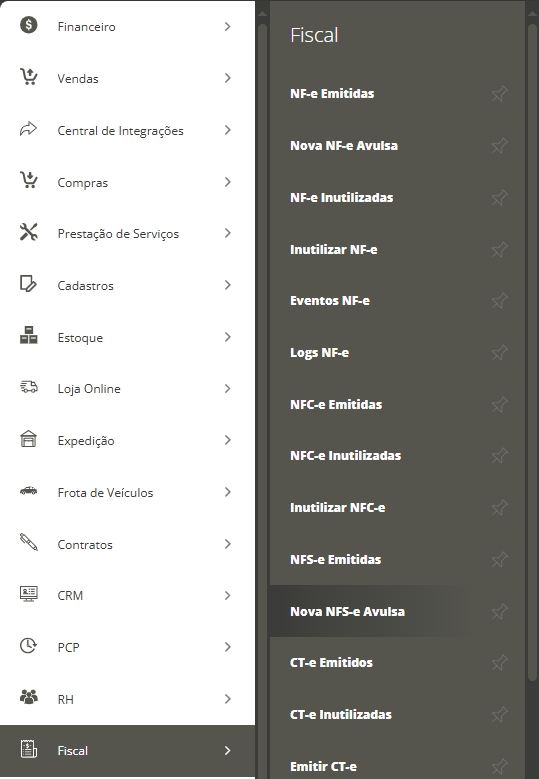 Você pode emitir a NFS-e através de uma Ordem de Serviço, através de Contrato ou então, de forma avulsa. Aqui neste artigo, você verá como emitir a NFS-e avulsa. Então, para começar a emitir, você precisará acessar o menu lateral Fiscal, submenu Nova NFS-e Avulsa.