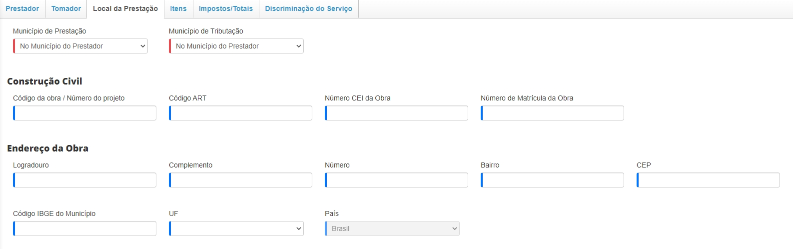 Seção Local da Prestação
