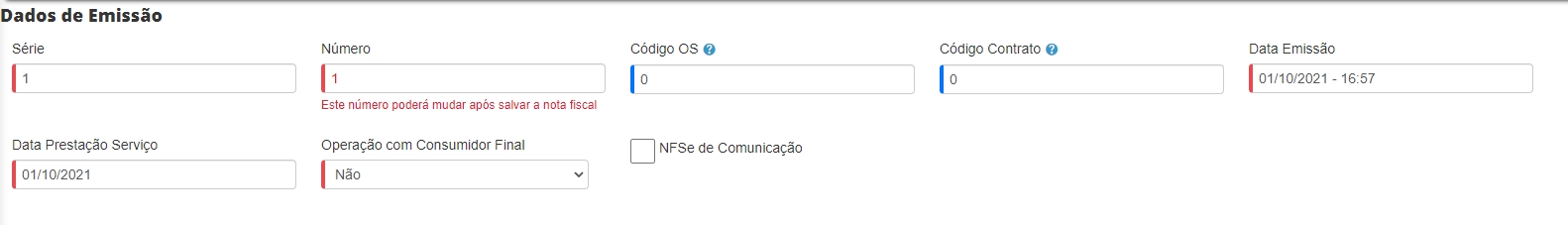Número: na primeira NFS-e emitida, deverá ser informado o número do RPS, com próximo número de sua sequência de geração de notas de serviço. Depois da primeira nota emitida, este campo será preenchido automaticamente;
