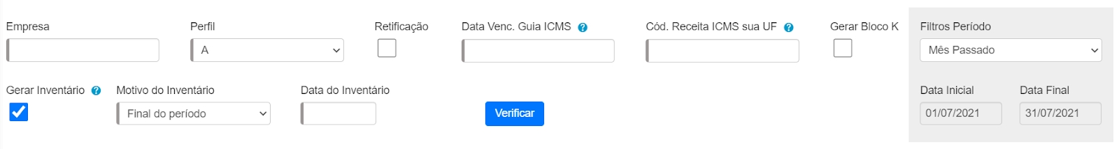 Data do Inventário: selecione a data do inventário de produtos que será levado em consideração no SPED Fiscal;