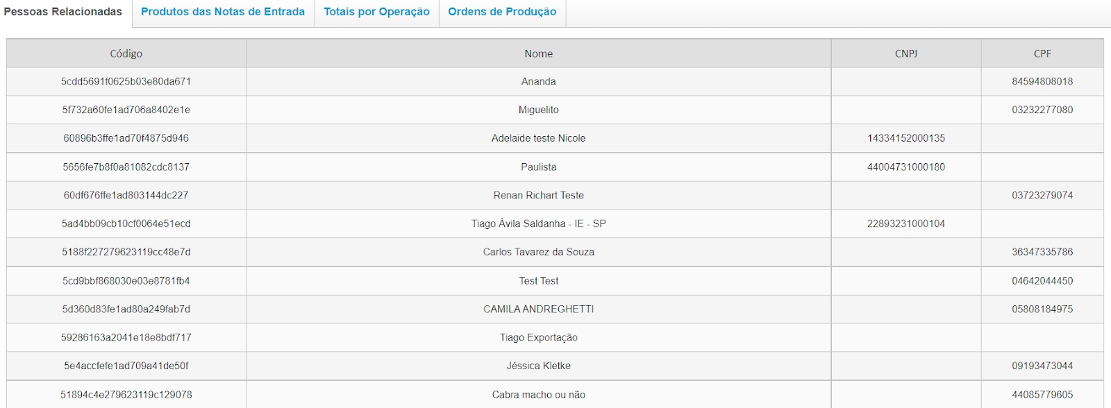 Nesta aba serão listadas todas as pessoas que tiveram algum tipo de interação de documentos fiscais.