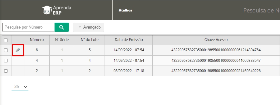 Na nova tela, edite a nota fiscal que está com o status Em Edição, clicando no ícone de lápis.