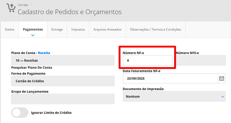 Agora, busque pela venda que deseja reimprimir o cupom fiscal, na aba Informações Financeiras, busque pelo campo Número NF-e.