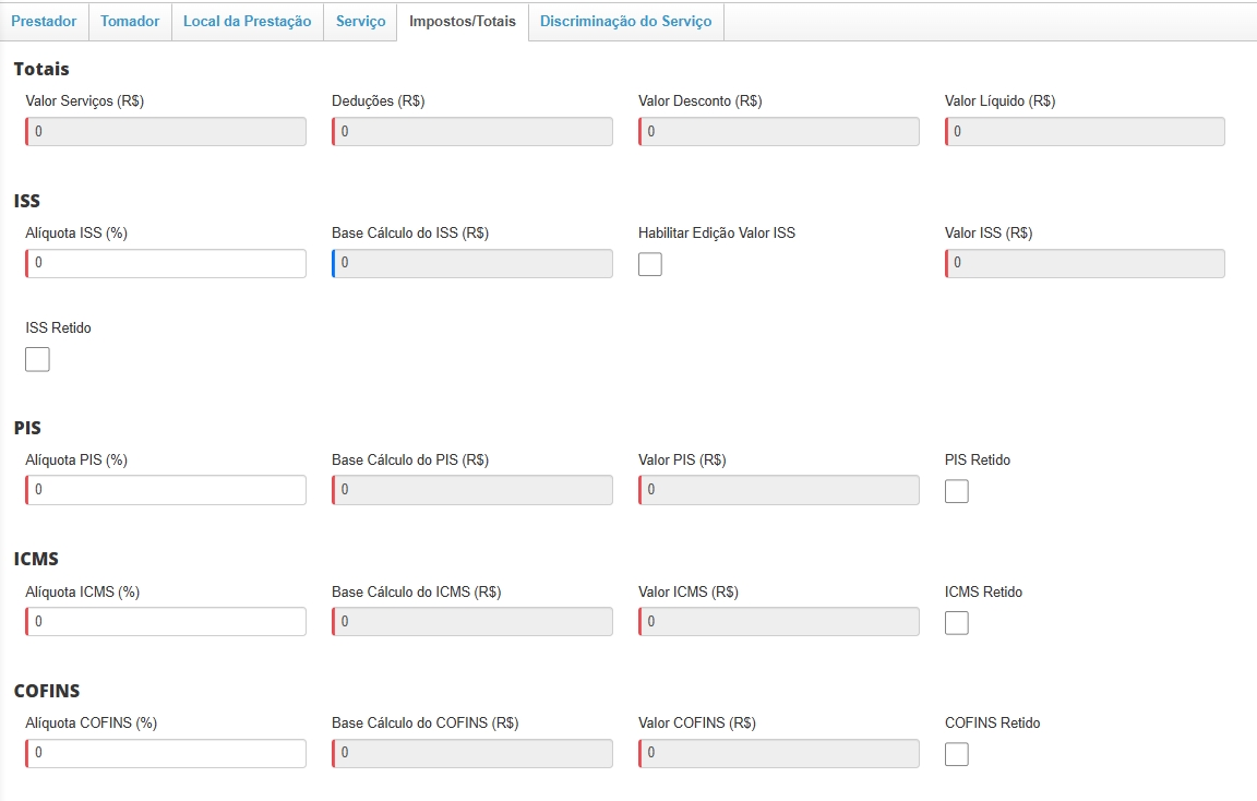 Inscrição Municipal: informe a inscrição municipal do cliente. Caso esta informação esteja no cadastro do cliente, o sistema preencherá automaticamente;