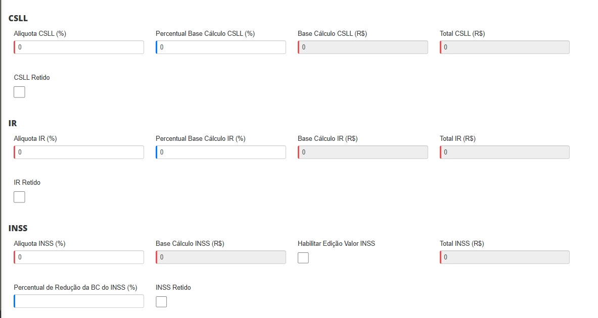 Nesta seção, você poderá visualizar o valor de cada imposto e os totais.