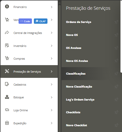 Para estar corrigindo no sistema acesse, menu lateral Prestação de Serviços e em seguida submenu Classificações