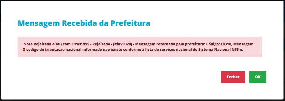 Com a padronização nacional da NFS-e, os serviços passaram a exigir não apenas o código da Lista de Serviços da LC 116/2003, mas também o correspondente desdobramento nacional, que identifica de forma mais específica a atividade prestada. Quando essa relação não existe, está incorreta ou não foi configurada no sistema, a prefeitura rejeita a emissão da nota.