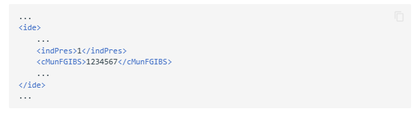 Neste exemplo, o documento foi identificado como uma operação presencial normal (indPres=1), mas o campo