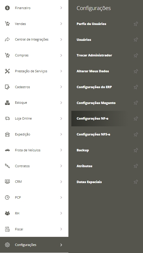 Verifique e em Meu lateral Configurações, submenu Configurações NF-e
