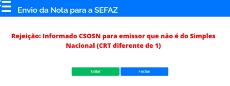Portanto, este ocorre ocorre quando sua empresa sendo Lucro Real/Presumido informou a Situação do ICMS para o regime de apuração Simples Nacional.