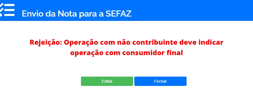 Este erro na emissão de NF-e, ocorre quando você está emitindo uma nota para um destinatário Não Contribuinte de ICMS. Normalmente esses destinatários são pessoas físicas, ou pessoas jurídicas que não possuem Inscrição Estadual. Porém, o erro ocorre por informar que essa pessoa não é um Consumidor Final.