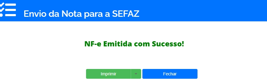 Após alterar esta informação, basta clicar em Pré-Visualizar e em seguida em Emitir NF-e. Assim, o sistema apresentará a mensagem de NF-e Emitida com Sucesso.