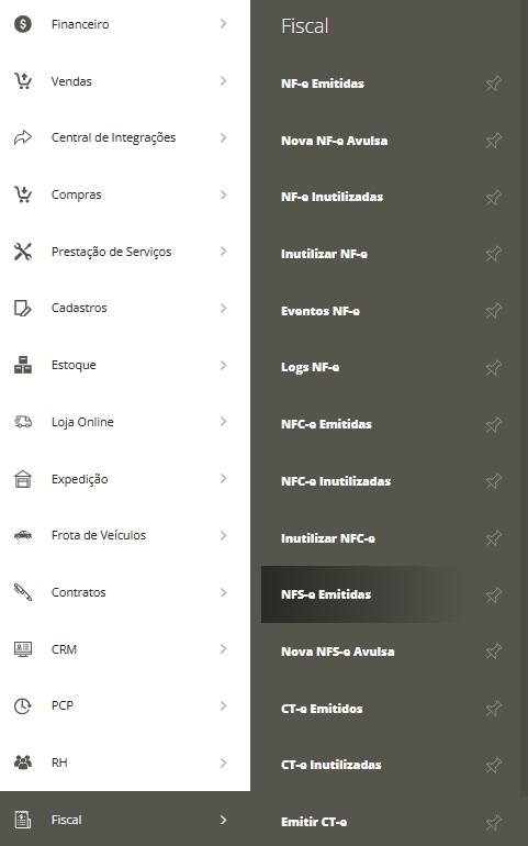 Acesse Menu lateral Fiscal e em seguida Submenu NFS-e Emitidas