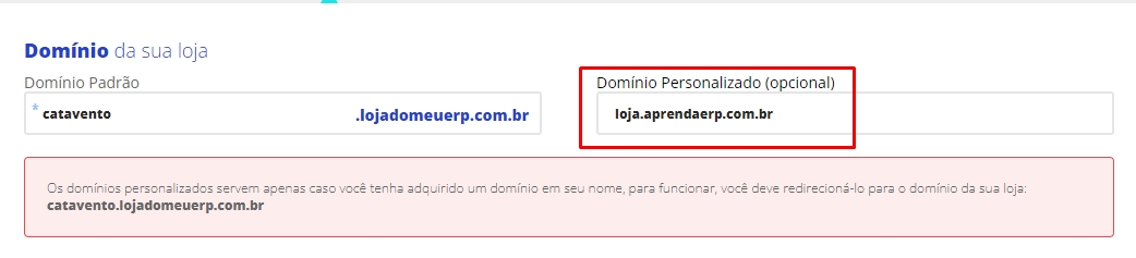 - É importante ressaltar que você não poderá ter o mesmo domínio em sites diferentes. Se você já utiliza o domínio www.dominio.com.br em determinado site, não poderá utilizá-lo na Loja Online. Para isso, você deverá criar um novo domínio, ou um subdomínio diferente, como por exemploloja.dominio.com.br.