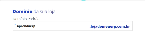 - Dados: neste campo informe o domínio padrão que esta configurado dentro da sua Loja Online, em Menu Lateral Loja online > Configurações em seguida clique em Configurações, onde no campo Domínio Padrão será possível visualizar o nome configurado. Na qual seu domínio é composto pelo campo nome + lojadomeuerp.com.br