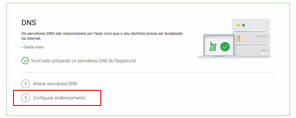 Agora, clique em "Configurar Zona DNS" ou Configurar Endereçamento