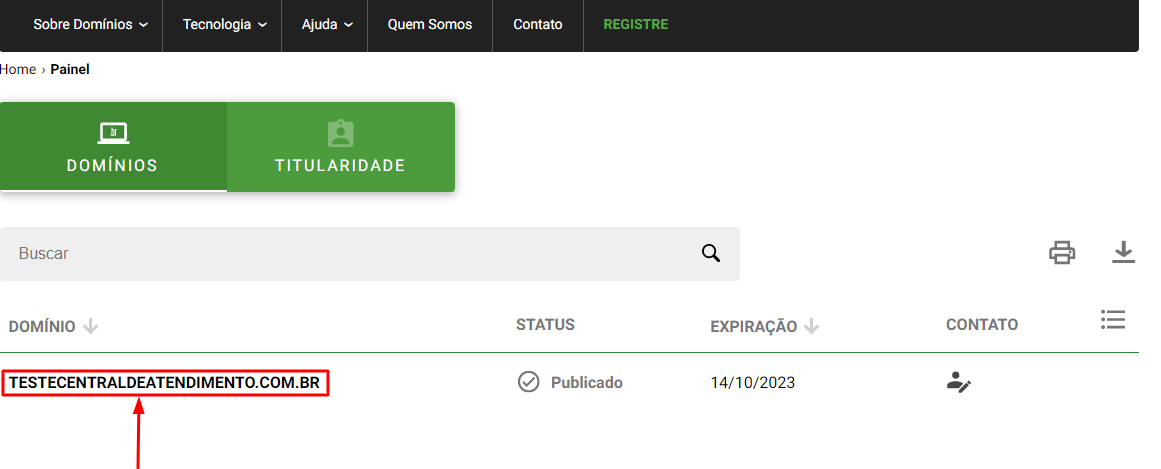 - Na página aberta, clique no próprio nome do domínio que deseja editar: