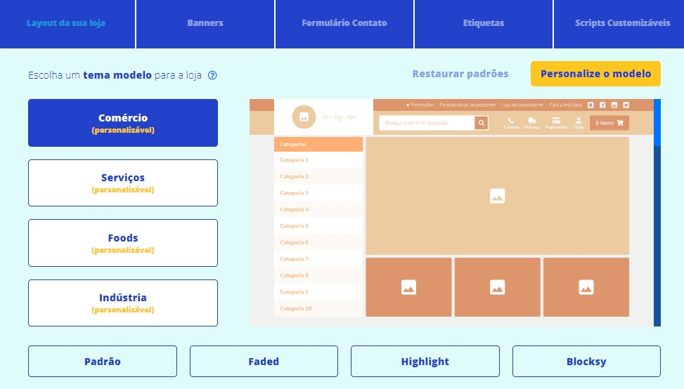 Neste artigo, você aprenderá como configurar o primeiro passo de criação da Loja Online, que seriam: o layout, as cores, exibição de banners, formulários para contato e etiquetas da sua loja.