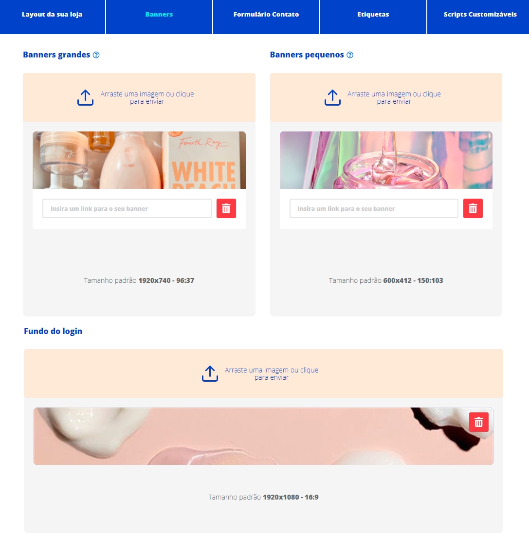 Banner Grande: este banner será o principal da sua loja. Você poderá colocar diversos banners.