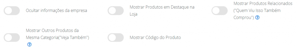 Mostrar Produtos Relacionados: ao marcar esta opção, o sistema irá sugerir ao cliente outros produtos que foram vistos ao olhar o produto que está sendo visualizado;