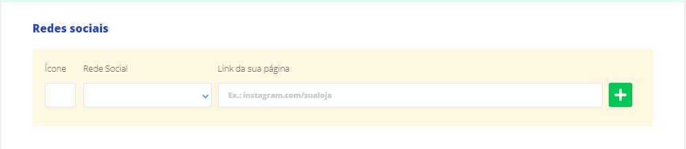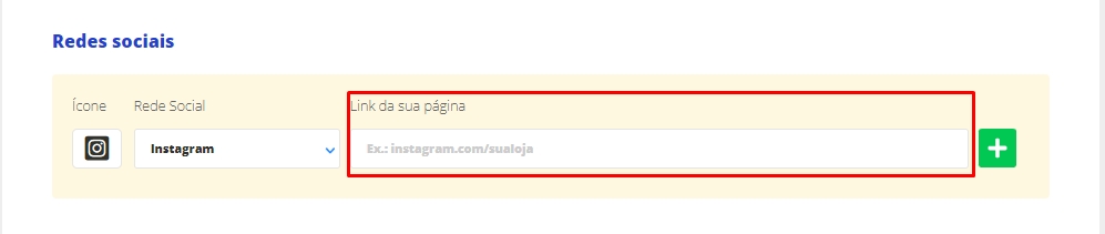 Por fim, basta clicar no campo Rede Social, assim o sistema lhe apresentará uma listagem com as redes sociais disponíveis. Basta você selecionar a que deseja e o sistema apresentará o ícone. Em seguida, informe o link da sua rede social e clique no ícone de mais para adicioná-lo.