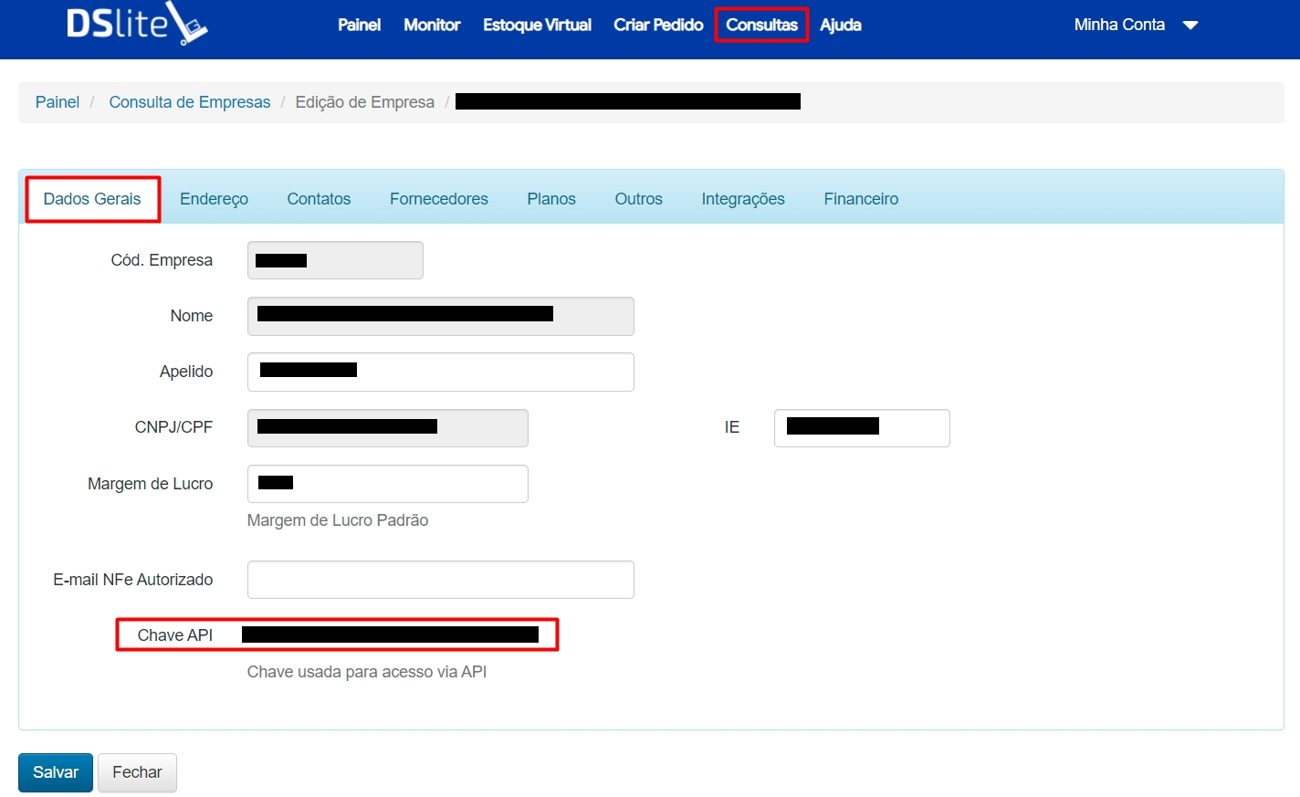 5- Verifique que no campo Chave API terá a informação necessária para a integração.