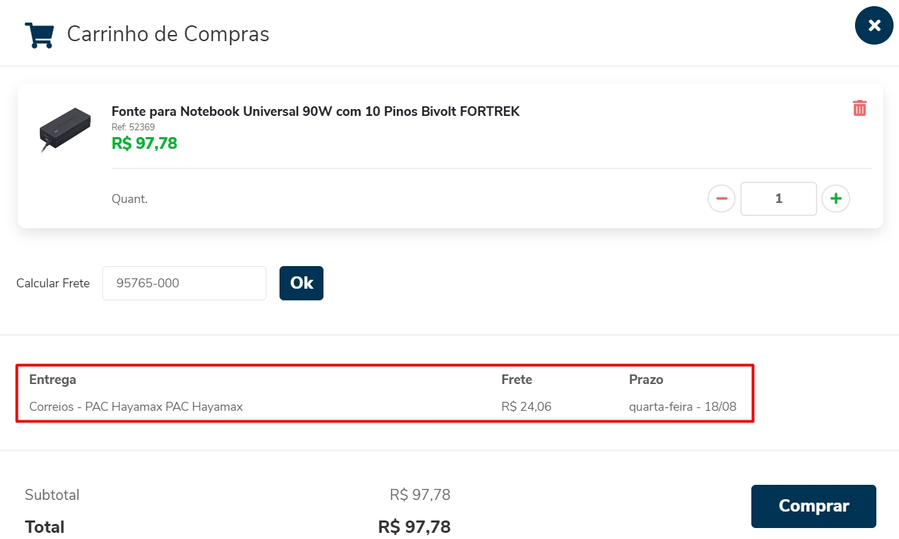 No momento do cliente realizar a compra desse produto na Loja Online, ele não saberá que o envio da mercadoria será realizado pelo seu fornecedor. Sendo assim, o valor do frete será aplicado da mesma forma que os demais produtos informados no site.