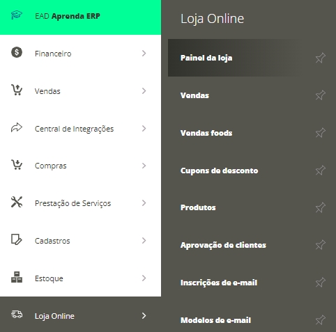 Para isso, acesse o menu lateral Loja Online, submenu Painel da Loja.