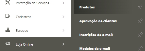 Para acessar esse recurso, acesse o menu lateral Loja Online, submenu Produtos.