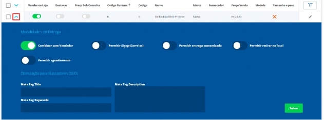 Agora, você deverá expandir o produto para que possa visualizar os campos.