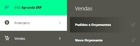 Para isso, você deve acessar o menu lateral Vendas, submenu Pedidos e Orçamentos.