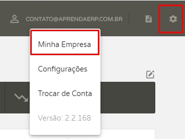 Para iniciar acesse a engrenagemno canto superior de sua tela e clique em Minha Empresa.