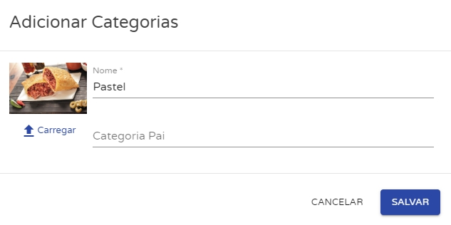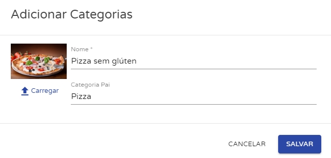 O campo Categoria Pai refere-se à uma categoria que pode possuir outras categorias atreladas. Ou seja, é possível criar subcategorias que tenham o mesmo gênero. Por exemplo, ao criar uma categoria Pizza sem Glúten, ela fará parte do gênero Pizza. Portanto, Pizza será a categoria pai.