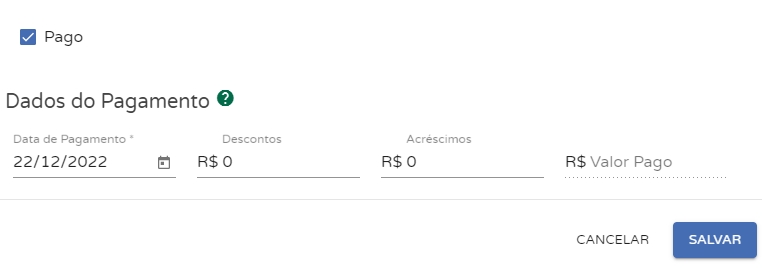 Ao clicar em Pago, se abrirá os seguintes campos: