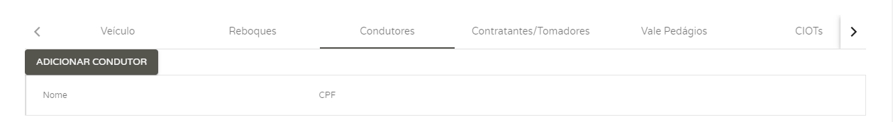 A seguir, na aba Condutores, você poderá identificar os condutores que levarão a mercadoria. Informe o nome e CPF de cada condutor. Lembrando que este condutor deve estar previamente cadastrada como Pessoa em seu sistema.