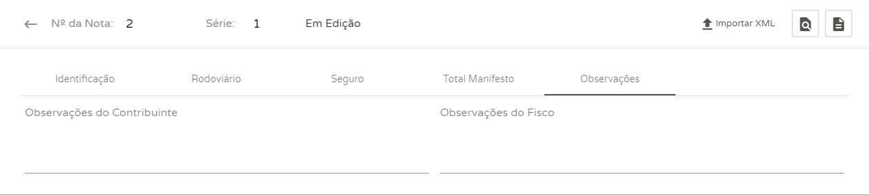 Por fim, na seção Observações, você poderá adicionar informações do contribuinte e do fisco.