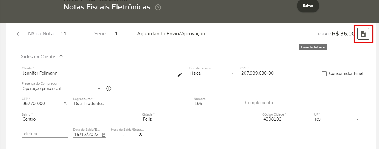 De ambas as formas, o sistema irá direcionar para a tela de edição da NF-e com todos os dados do pedido.