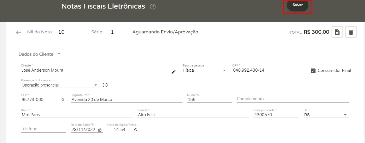 Uma vez que todos os dados tenham sido informados corretamente, clique em Salvar.