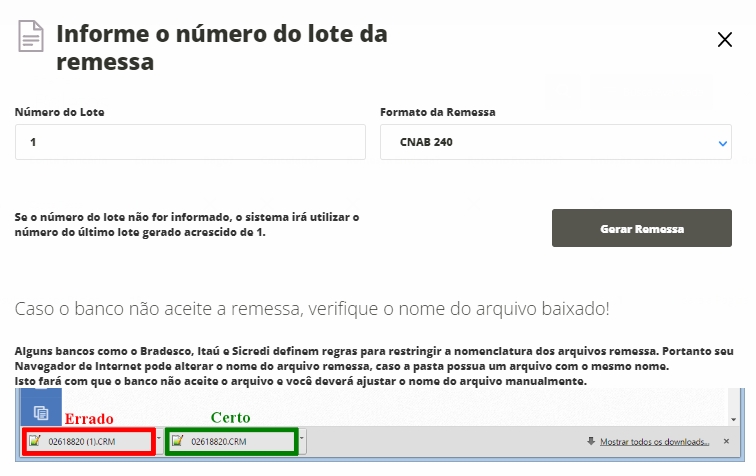 Agora é só clicar em Gerar Remessa e automaticamente o sistema irá salvar o arquivo em seu computador.