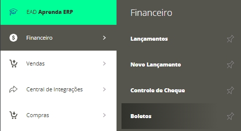 Acesse o Sistema ERPutilizando o mesmo e-mail e senha de acesso ao Offline. Feito isso, vá até o menu lateral Financeiro, submenu Boletos.