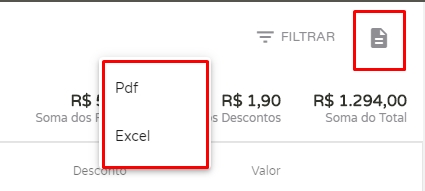 No topo de sua tela será possível verificar a possibilidade de extrair as informações apresentadas em PDFou Excelde acordo com suas necessidades.