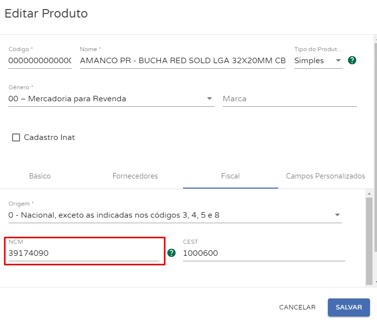 Importante!Lembrando que no caso de você cadastrar um produto com variação, o NCM do Produto Pai será replicado a todas as suas variáveis.