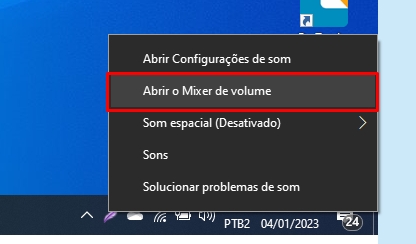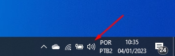 Em seguida, localize na barra de tarefas do seu computador o ícone de alto-falante.