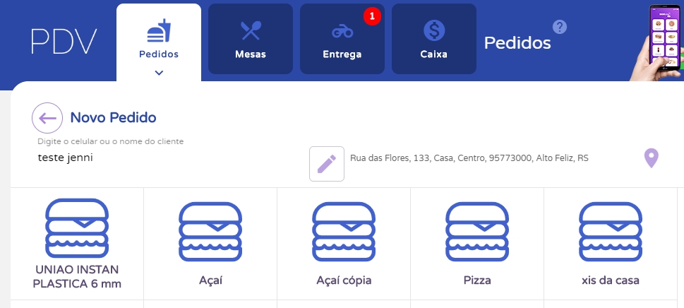 Com seus produtos, taxas de entrega e motoboys cadastrados, você já está pronto para começar a realizar sua vendas através da tele-entrega. Para isso acesse o Menu Lateral Foods, submenu Pedidos.