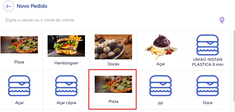 Após isso, selecione seu produto Pizza.