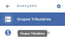Apóscriar grupos tributários, acesse o menu lateral Fiscal, submenu Avançado, e então clique em Grupos Tributários.