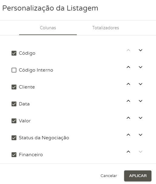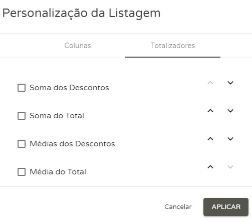 Nele será possível acrescentar ou retirar colunas de visualização de acordo com as disponibilidade de informações, e também adicionar os totalizadores que irão apresentar a soma de informações de acordo com suas necessidades.