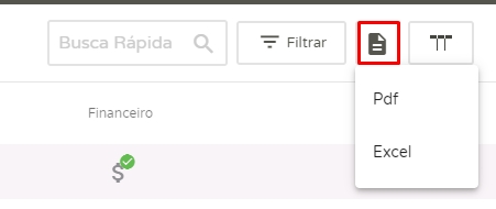 Se desejar, você pode extrair as informações apresentadas em PDFou Excel, para isso, clique no ícone e selecione a opção desejada.