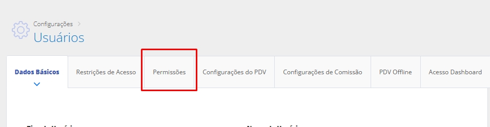 Ao editar o usuário, clique na aba Permissões.